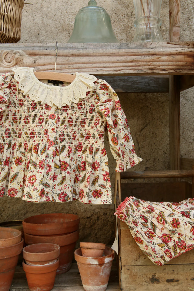 EXCLUSIVE blouse à smocks plumetis rouge sur rose et son col crochet amovible