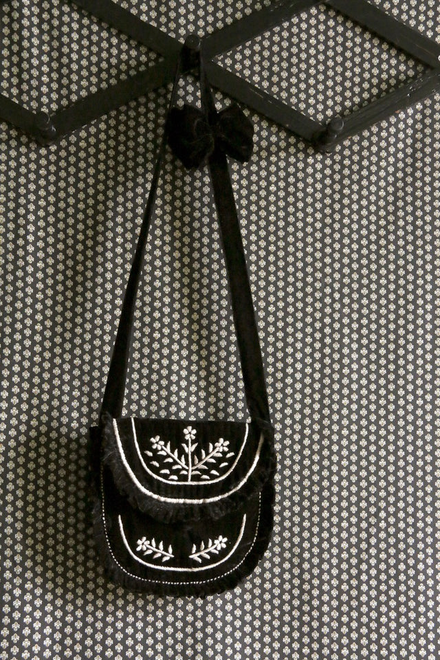 Ensemble petit sac brodé et barrette noeud pour les cheveux