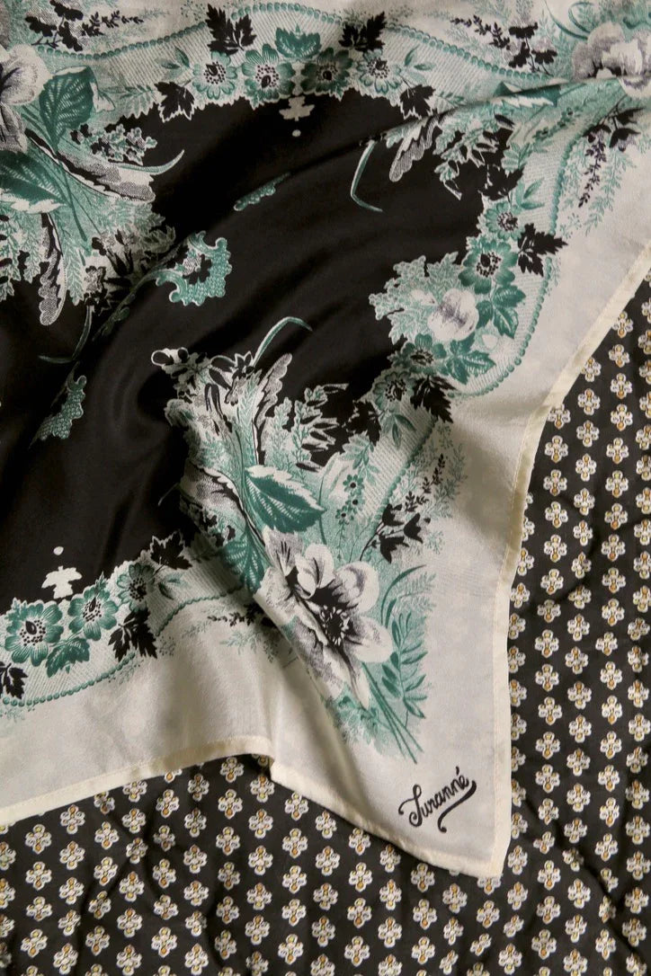 small black/green/ivory poppy silk square