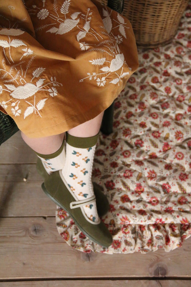 Chaussettes farandole de fleurs caramel / curry et son élastique noeud pour les cheveux