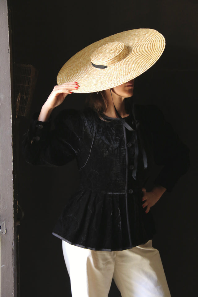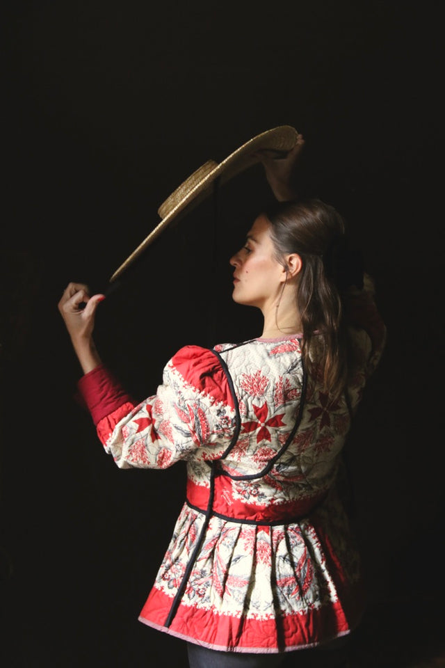 Veste matelassée réversible velours noir / imprimé "Provençal noir"