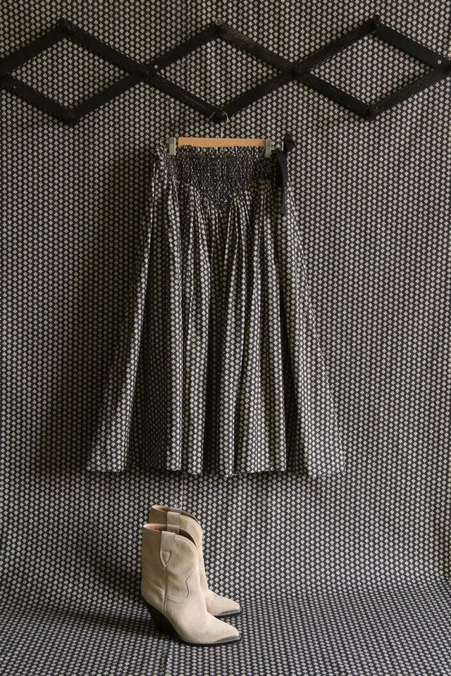 Long jupon smocké "Iris" imprimé "Provençal noir"