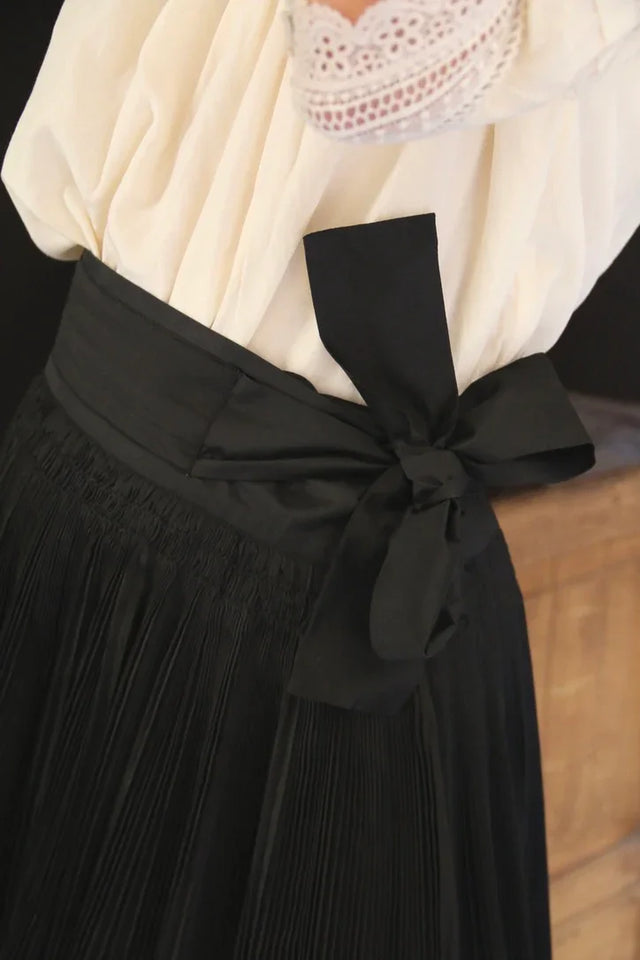 Long jupon "Fleur d'oranger" rayure noire / ivoire